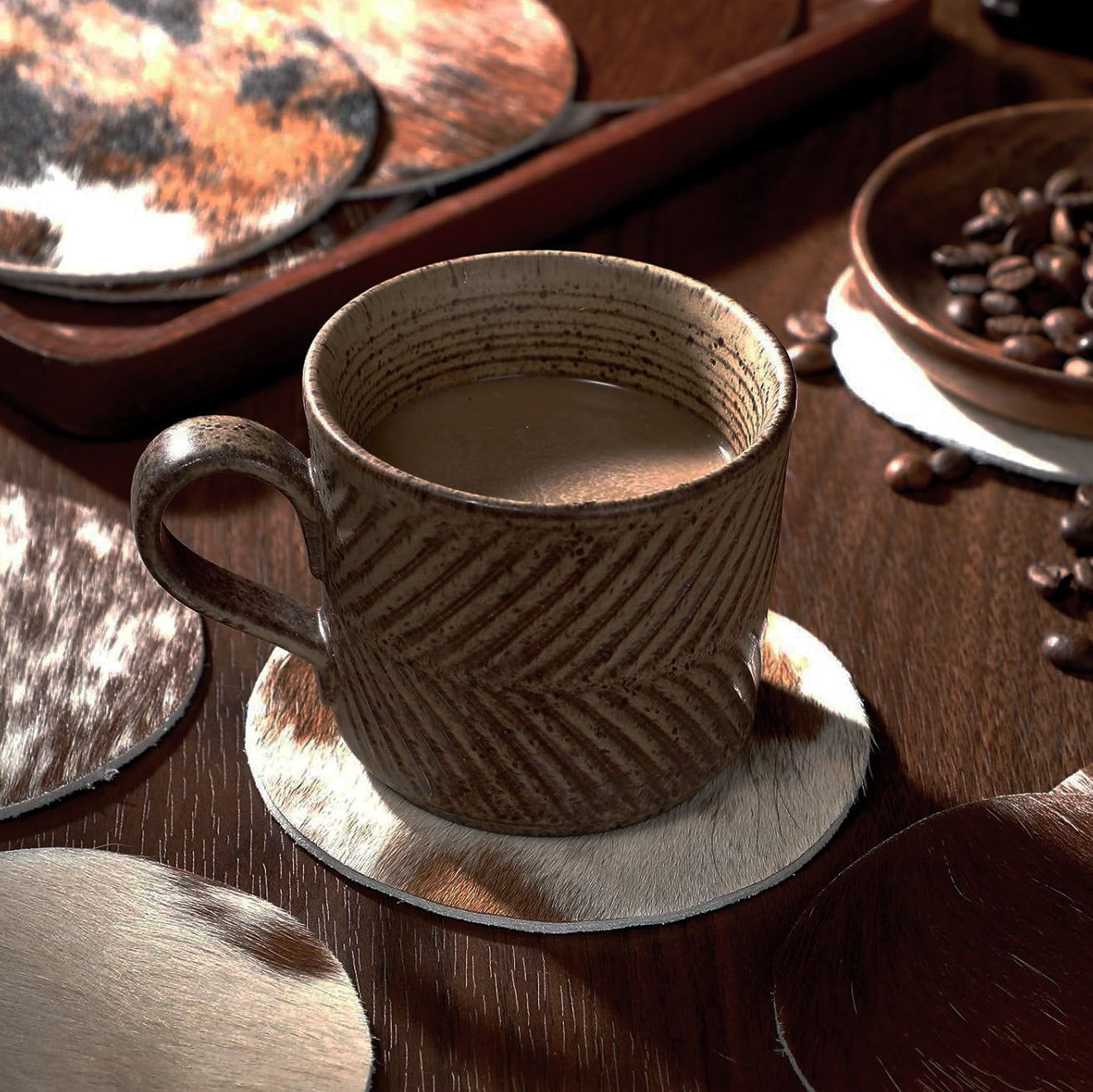 Each cowhide is individually hand selected by us at source. By hand selecting each cowhide it ensures our hides are very consistent in terms of their premium quality and beautiful, rich colour. You will receive a random selection of 4 x coasters.
