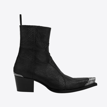 Dante 65mm Western Boots - Deep Black Python-Effect Leather