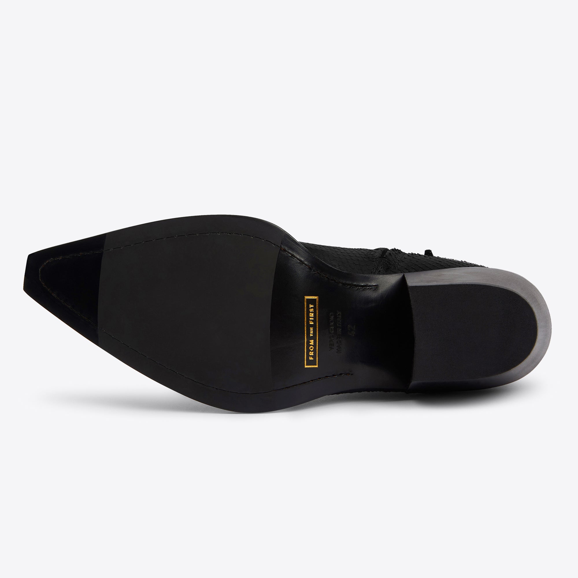 We have a very limited batch of our best selling Dante boots, this time in a deep pure black, with contrasting custom-made metal hardware. Each pair are hand-dyed in-house, which makes it possible to have rich, deep patination out of the box. As always, crafted using the finest premium Italian python-effect calf leather. A concealed YKK zipper blends in perfectly and allows the custom metal hardware to define the boot. All of our boots are handmade using Blake stitch construction, which allows for a close-cut sole giving the boot a sleek profile. It's also a process that allows for resoling once the outsole is worn, meaning these boots can last a lifetime.